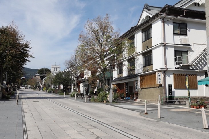中央通りからオフィスに入る場所。左手に善光寺